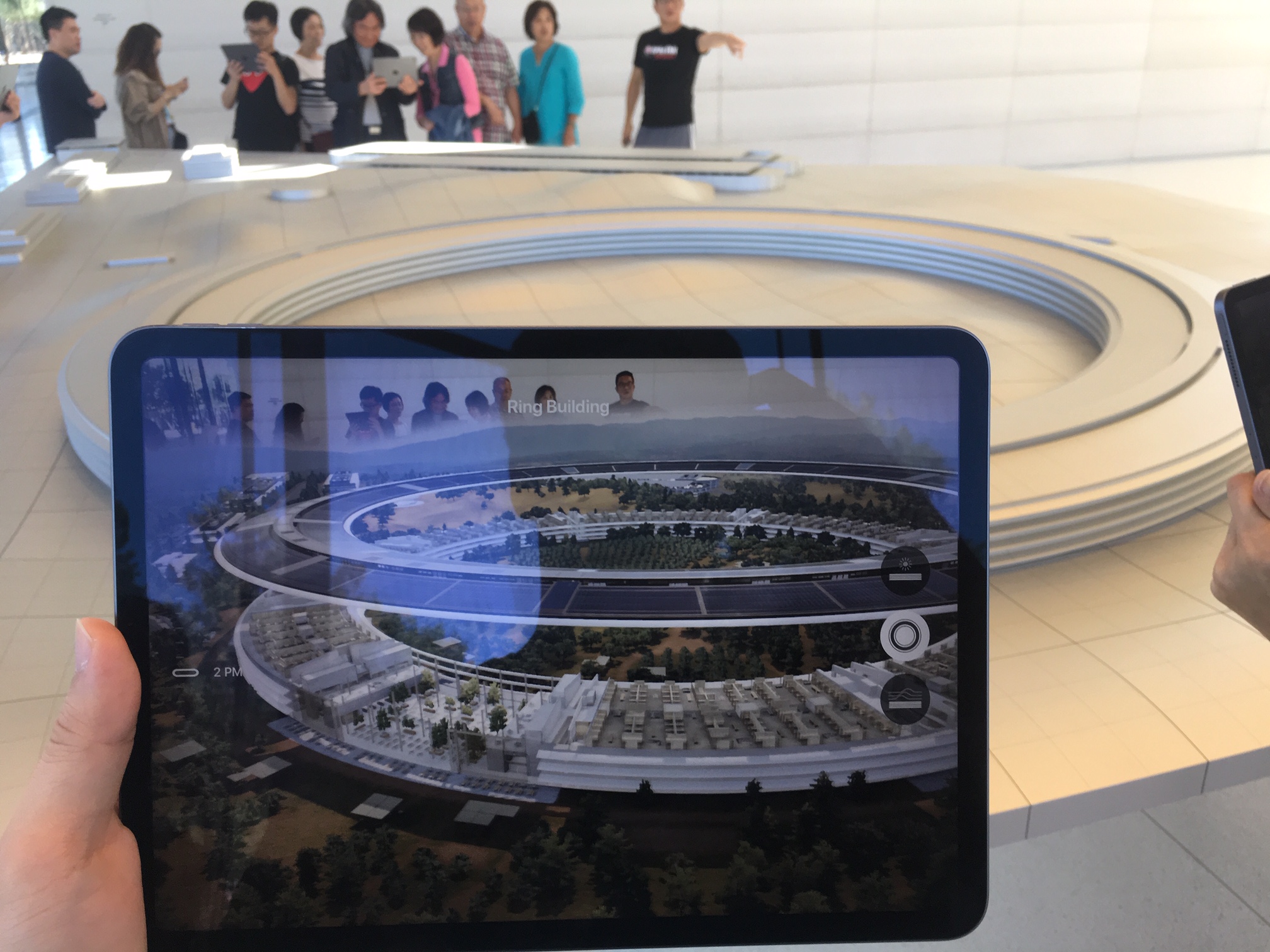 뒤쪽으로는 애플 사옥을 VR 로 감상할 수 있도록 만들어 놨다